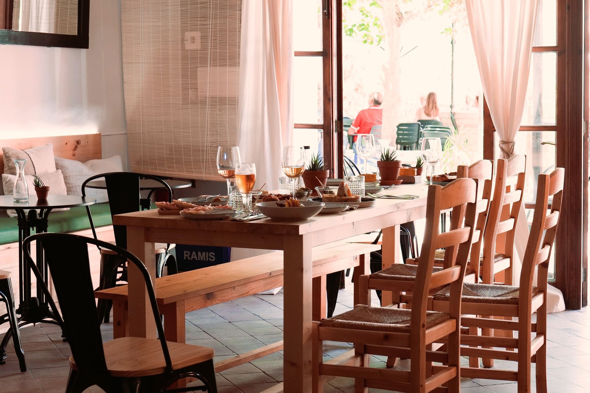 The place is cozy, warm, industrial style. We have a large bar and a nice terrace outside. It is ideal for dinners as a couple or with friends.